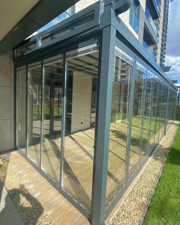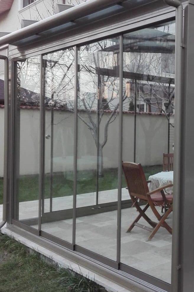 - Deoarece terasa închisă cu sticlă este aplicat ca sistem de mișcare glisant, îl puteți deschide și închide după cum doriți. Prin urmare, puteți fi protejat de condițiile meteorologice nefavorabile precum zăpada, iarna, ploaie, vânt.