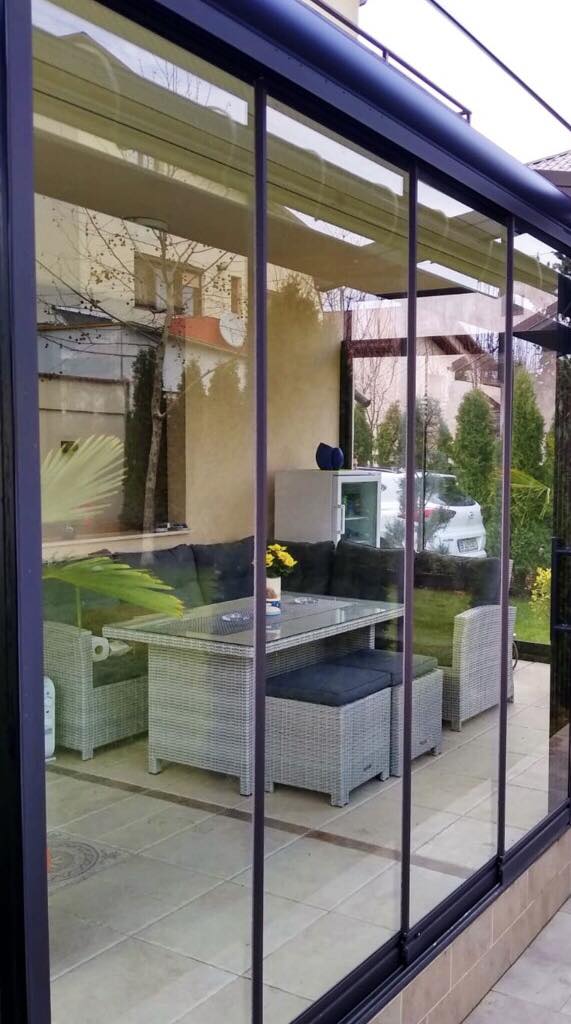 - Sisteme glisante din sticla sunt foarte estetice si permit o utilizare ușoară fara a ingusta spațiul, te poti bucura de terasa sau balcon in toate anotimpurile.